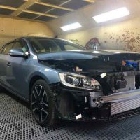 札幌市板金塗装 ボルボ V60 左フロントフェンダ板金、ボンネットキズ修理塗装