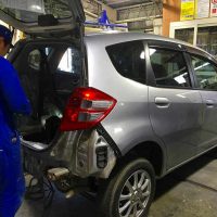 札幌板金塗装 ホンダフィット【ボンネットサビ、左クオーターホイールハウスサビ修理】